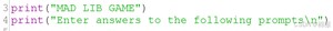 《Python游戏编程入门》的“3.2.4 Mad Lib”中介绍了一个名为“Mad Lib”游戏的编写方法。