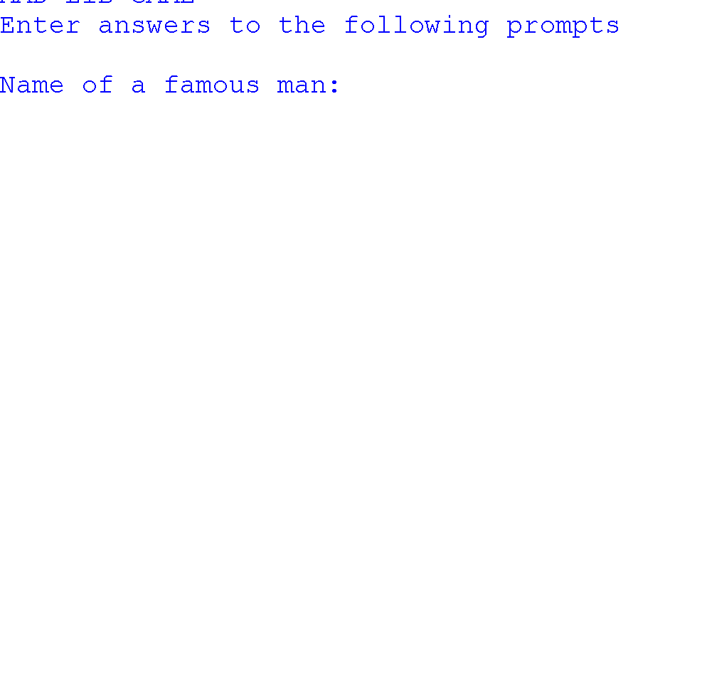 “Mad Lib”游戏由玩家根据提示输入一些信息,例如男人姓名、女人姓名、喜欢的食物以及太空船的名字等。游戏根据玩家输入的信息编写出一个故事,如图1所示。