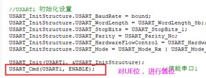 注意的一点,初始化中,对UE进行使能; 即USART模块可以被使用。