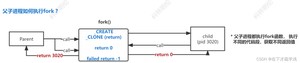 要注意的是,在第3步中,fork函数不是由父进程来执行,而是由子进程来执行,当父进程执行完_CLONE函数后,子进程会执行fork函数的剩余部分,执行最后这个语句,fork函数就会有第二次返回,如果成功就返回0,失败就返回-1。