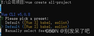 注:我创建项目的时候遇到默认配置,如果不想使用默认配置的话可以运行以下命令创建新的额vue项目