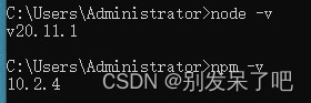 - 前往 Node.js 官网下载并安装 Node.js,安装完成后,npm 会随之安装。确认 Node.js 和 npm 是否成功安装,可以在命令行中运行以下命令检查版本: 运行结果:(如下,node和npm安装成功。)e