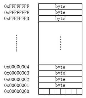 前面已经提到内存其实就是一组有序字节组成的数组,数组中,每个字节大大小固定,都是 8bit。对这些连续的字节从 0 开始进行编号,每个字节都有唯一的一个编号,这个编号就是内存地址。示意如下图: