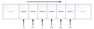 可以对指针变量 p 进行 p++、p--、p + i 等操作,所得结果也是一个指针,只是指针所指向的内存地址相比于 p 所指的内存地址前进或者后退了 i 个操作数。用一张图来说明一下:
