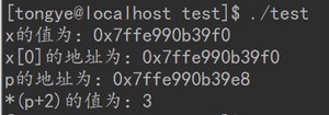 可以看到, x 的值与 x[0] 的地址是一样的,也就是说数组名即为数组中第 1 个元素的地址。实际上,打印 &x 后发现,x 的地址也是这个值。而 x 的地址与指针变量 p 的地址是不一样的。故而数组和指针并不能完全等价。