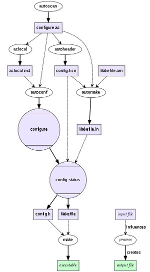 autoconf是一个用于生成可以自动地配置软件源码包,用以适应多种UNIX类系统的shell脚本工具,其中autoconf需要用到 m4,便于生成脚本。automake是一个从Makefile.am文件自动生成Makefile.in的工具。为了生成Makefile.in,automake还需用到perl,由于automake创建的发布完全遵循GNU标准,所以在创建中不需要perl。libtool是一款方便生成各种程序库的工具。
