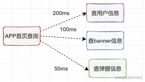 如果是串行一个一个查,比如查用户信息200ms,查banner信息100ms、查弹窗信息50ms,那一共就耗时了,如果还查其他信息,那耗时就更大了。这种场景是可以改为并行调用的。也就是说查用户信息、查banner信息、查弹窗信息,可以同时发起。