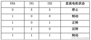 ②控制口,这部分是和单片机连接的,分为通道使能口(ENA和ENB)和逻辑输入口(IN1-IN4),通道使能口接PWM控制电机速度,逻辑输入控制电机正反转,具体逻辑如下图所示(ENB、IN3、IN4和ENA、IN1、IN2的逻辑相同)。