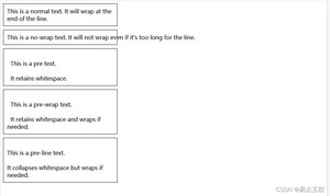在上述代码中, 类通过 属性保留了文本的空白符,并在必要时自动换行。这适用于需要保留格式和空格的文本,如代码块或诗歌。