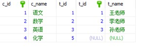 右连接:right [outer] join,右连接从右表取出所有记录,与左表匹配。如果没有匹配,以null值代表左边表的列。outer 可以不写,默认情况下不写outer关键字。