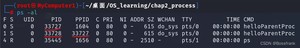 果然如我们所料,根据fork的返回值使得一段程序同时执行了if语句的不同分支。同时由于有pause在,父子进程都没有结束,我们可以另起一个终端,查看当前终端存在的进程: