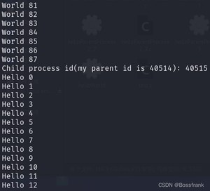 编译后执行,可以发现父进程执行到第88次循环后就转而执行子进程,后面又切换回父进程:
