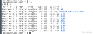 分别是:第一段为文件所有的用户,在图片中可以看到,虽然我现在在管理者用户中但我的文件所有用户为zongjun,这是第一段rwx字母对应的用户,也就是说它对文件有着读、写、可执行的权限,为最高级别的权限,也是没有那么安全的权限。