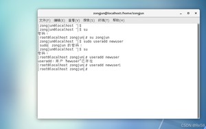 用户的创建一般要在Lunix系统中的root用户中执行,可以输入 su 命令转换为root用户