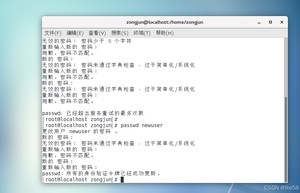 注意看上图中的用户,在@符号前的用户名是不同的,一个是自己一开始就创建的用户名,一个是Linux系统中的管理员用户,输入 su 命令会提示你输入密码,密码就是自己一开始设置的。