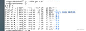 对比上面两张图可以发现,视频文件的用户组权限原本是r-x,但用了上面的命令我给它加上了写的权限,这样可以方便一点。