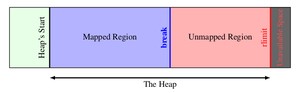 Linux维护一个break指针,这个指针指向堆空间的某个地址。从堆起始地址到break之间的地址空间为映射好的,可以供进程访问;而从break往上,是未映射的地址空间,如果访问这段空间则程序会报错。