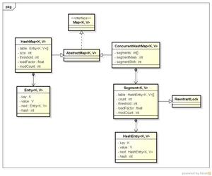 从类图中可以看出来在存储结构中ConcurrentHashMap比HashMap多出了一个类Segment,而Segment是一个可重入锁。