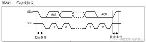 起始信号:当SCL为高电平期间,SDA有高到低的跳变;启动信号是一种电平跳变时序信号,而不是一个电平信号。