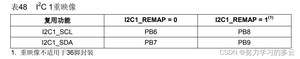图片来源:STM32F1xx中文参考手册 >>> 8.3.9 I2C1 复用功能重映射>>>表48