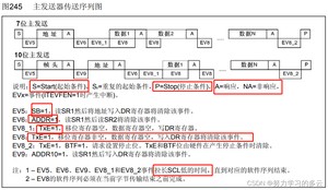 图片来源:STM32F1xx中文参考手册>>>24 I2C接口>>>24.3.1 模式选择>>>图245 主发送器传送序列图