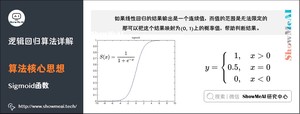 - 第2部分:逻辑回归核心思想。介绍线性回归问题及逻辑回归解决方式,讲解逻辑回归核心思想。