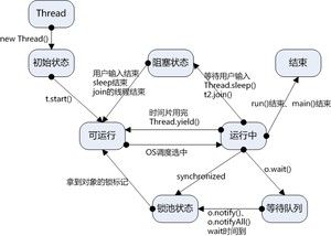 Obj.wait(),与Obj.notify()必须要与synchronized(Obj)一起使用,也就是wait,与notify是针对已经获取了Obj锁进行操作,从语法角度来说就是Obj.wait(),Obj.notify必须在synchronized(Obj){...}语句块内。从功能上来说wait就是说线程在获取对象锁后,主动释放对象锁,同时本线程休眠。直到有其它线程调用对象的notify()唤醒该线程,才能继续获取对象锁,并继续执行。相应的notify()就是对对象锁的唤醒操作。但有一点需要注意的是notify()调用后,并不是马上就释放对象锁的,而是在相应的synchronized(){}语句块执行结束,自动释放锁后,JVM会在wait()对象锁的线程中随机选取一线程,赋予其对象锁,唤醒线程,继续执行。这样就提供了在线程间同步、唤醒的操作。Thread.sleep()与Object.wait()二者都可以暂停当前线程,释放CPU控制权,主要的区别在于Object.wait()在释放CPU同时,释放了对象锁的控制。