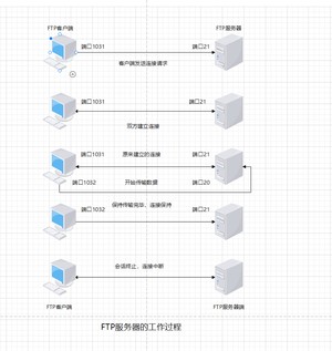 - 当FTP客户端向服务端发送拆除连接的请求并确认后、客户端将端口与FTP服务的连接,客户端上动态分配的端口将自动释放。