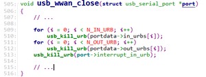 可以看到,当主动退出microcom时,相应的URB的status字段值为-2,对应到串口驱动中就是调用了usb_wwan_close()中的usb_kill_urb()