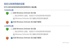 关闭防火墙路径:控制面板系统和安全Windows Defender 防火墙