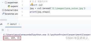 print(image.shape) 返回一个三元组,分别是图像的高度,宽度和颜色通道数。