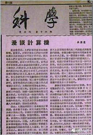 1954年11月8日,从丹麦回国加入计算机组的吴几康在《光明日报》上发表了介绍计算机的文章《漫谈计算机》。1955年11月14日,闵乃大在《人民日报》上发表文章《一个新的科学部门——自动快速电子计算机》,开始向社会大众介绍计算机这种“人类智力放大工具”。
