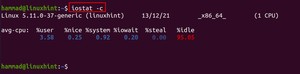 如果只执行“iostat”命令,则会显示两者的汇总报告; CPU和I/O设备,但它也可以与不同的选项一起使用,这将显示特定设备的详细摘要。例如,如果我们想显示 CPU 利用率报告,我们将在 iostat 命令中使用“-c”标志: