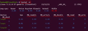 它显示每秒传输数 (tps),其中传输是 I/O 设备向 CPU 发出的请求,tps 越高意味着 CPU 越忙