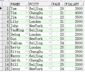 数据表(Oracle):T_Person 表保存了人员信息,FName 字段为人员姓名,FCity 字段为人员所在的城市名,FAge 字段为人员年龄,FSalary 字段为人员工资