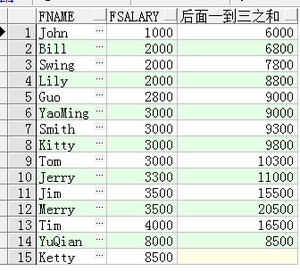 还可以在开窗函数中使用一些高级的函数,有些函数同时被DB2和Oracle同时支持,比如