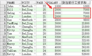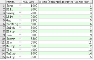 COUNT(*) OVER(PARTITION BY FCITY)表示对结果集按照FCITY进行分区,并且计算当前行所属的组的聚合计算结果。比如对于FName等于 Tom的行,它所属的城市是BeiJing,同