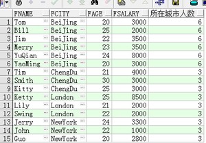 立于结果集的,创建的分区只是供进行聚合计算的,而且不同的开窗函数所创建的分区也不互相影响。下面的 SQL 语句用于显示每一个人员的信息以及所属城市的人员数: