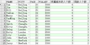 扰。比如下面的SQL语句用于显示每一个人员的信息、所属城市的人员数以及同龄人的人数: