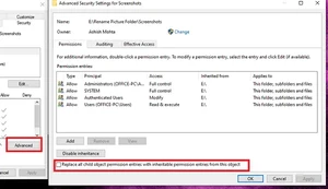 - 首先,确保选择顶层文件夹的权限集或完全控制