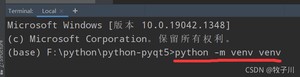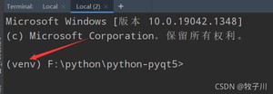 在打开一个终端,这里要显示的venv,这样才算配置虚拟解释器成功,表示现在的环境是虚拟环境。