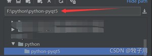 5、复制上面的路径:F:pythonpython-pyqt5venvLibsite-packagesqt5_applicationsQtbin