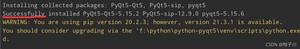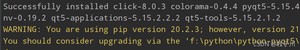 出现Successfully,即为安装成功,出现黄色的不用管,这个是警告,一般是告诉pip需要进行更新