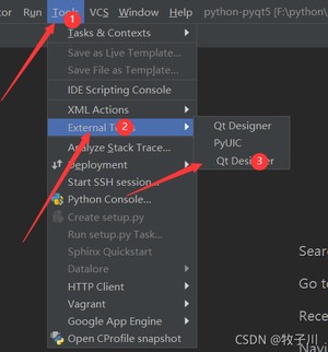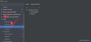 进入pycharm,点击File-->点击Settings-->Tools-->External Tools