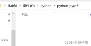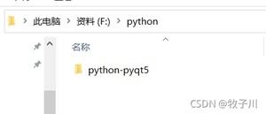 我在F盘的建了一个文件夹为python,在这个里面建立了一个文件夹python-pyqt5来专门存放代码,此时的python-pyqt5里面为空,没有任何文件