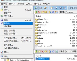 用UltraISO打开最开始下载的windows.iso镜像,打开sources文件夹,将我们封装好的映像添加进去