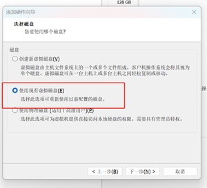 选择使用现有虚拟磁盘