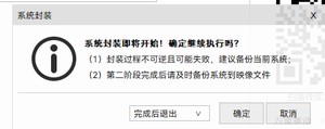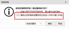 点击封装,封装完成后需要重启立刻进入PE,不能进入操作系统。(重启后进入了操作系统会导致封装失败)