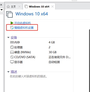 打开虚拟机设置