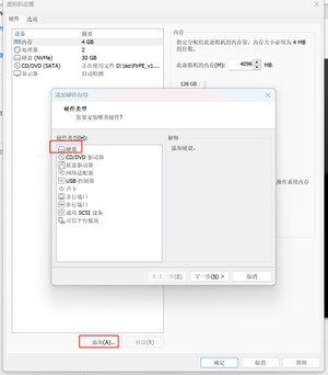 点击添加,选择硬盘